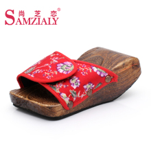 特价包邮 夏季 潮 烧桐木坡跟凉拖鞋 女士人字木屐木拖鞋 批发