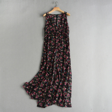 2016夏欧美新款女装无袖背心长款碎花修身側边开叉飘逸雪纺衫开衫