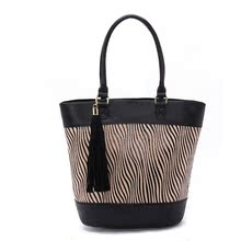 专柜大牌 欧美时尚个性动物纹斑马纹流苏水桶包商务单肩手提包