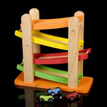 木制环保益智 男孩云霄飞车四层滑翔车 轨迹滑滑车 儿童玩具特价