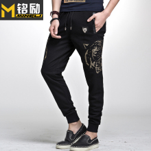 铭励夏季新款时尚个性潮男卫裤 中国风龙印花男收口小脚潮流长裤