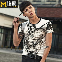 铭励2016潮牌新款时尚男装 夏季个性潮男短袖t恤 水墨印花男半袖