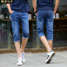 复古韩版夏季小脚修身牛仔裤男士七分裤中裤青少年男生牛仔7分裤