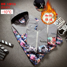 春秋潮牌防风衣青少年加绒加厚反光衣外套学生男女情侣发光衣班服
