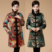 16冬装加肥加大码民族风棉袄 唐装中长款兔毛棉服外套 复古棉衣女