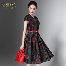 科尚2017夏季新款复古风连衣裙修身显瘦中长裙女侧身拉链N7B0301