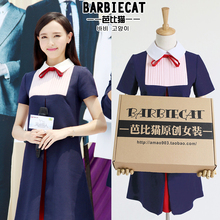 唐嫣明星同款蓝色娃娃领连衣裙女中长款学院风韩版小清新2017夏季