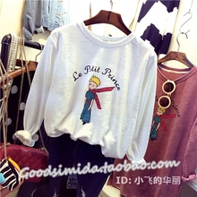 韩国单卡通做旧搞怪围巾小王子印花宽松舒适弹力棉长袖打底T恤女
