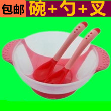 婴幼儿餐具感温勺子叉子吸盘碗组合 宝宝防翻碗/防滑碗训练碗包邮