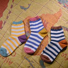 5双包邮韩国原单复古民族风条纹女中筒袜纯棉无骨潮流女士长袜子