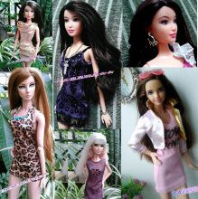 正版6分娃娃衣服配件ST超模FR 紫色蕾丝吊带裙 金色豹纹粉色包裙