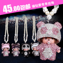 可爱蒙奇奇汽车挂件 车挂水钻镶钻水晶挂饰女士闪钻珍珠链挂饰