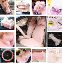 夏季新款汽车内饰套装 布艺蕾丝花边手刹排挡套 粉色装饰品