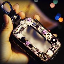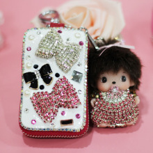卡通蒙奇奇蝴蝶结真皮水钻汽车钥匙包 时尚女士镶钻车载用钥匙套