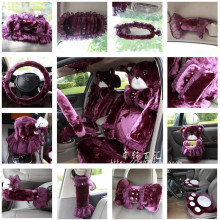 冬季毛绒汽车手刹排挡套 女士蕾丝卡通可爱内饰用品套装 紫色