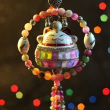 彩绘招财猫镶钻汽车挂件 女士可爱后视镜车内饰品水晶挂件保平安