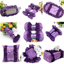 夏季新款汽车内饰套装 布艺蕾丝花边手刹排挡套 紫色装饰品