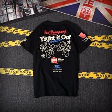 夏季欧美潮牌卡通纯棉圆领短袖t恤男士原宿风半袖体恤情侣装班服
