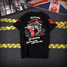 夏季新款男女同款短袖T恤 欧美街头蝎子印花潮流宽松圆领半袖衫男