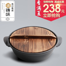 铸味铸铁锅 24cm纯手工生铁汤锅 日本锅送木垫通用炉灶炖锅 饭锅