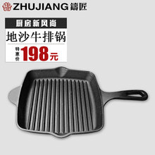 铸匠 铸铁锅无涂层不沾锅牛排锅煎锅烤肉平底锅地纱线25