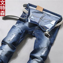 文特森春夏款男士韩版牛仔裤男潮流破洞刮烂弹力修身直筒潮牛仔裤