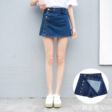 2017春夏新款韩版高腰蓝色防走光牛仔裙女Aa字裙裤裙半身裙短裙子