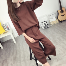 2017春装新款阔腿裤套装韩版秋冬女装潮时尚针织两件套春季气质夏