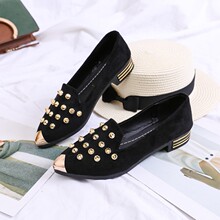 春秋季新款2017潮韩版浅口豆豆鞋尖头女懒人平底铆钉学生休闲单鞋