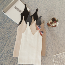 2017春季新款 女韩版纯色百搭短款针织吊带简约V领内搭打底小背心