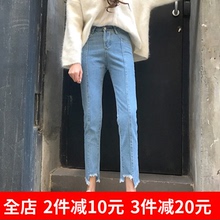 秋冬女装韩版高腰宽松不规则毛边缺口直筒裤显瘦九分裤牛仔裤学生