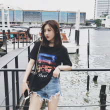 港味复古chic短袖t恤女夏韩版学生百搭2017宽松bf韩风上衣闺蜜装
