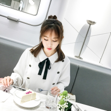 LEOS STUDIO春季新款韩版蝴蝶结系带长袖衬衫上衣女学院风打底衬
