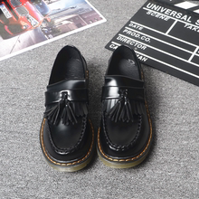 春秋英伦女鞋日系森女黑色复古英伦学院风流苏平底浅口小皮鞋单鞋