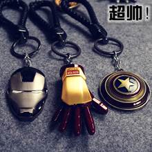 漫威 美国队长钢铁侠男女金属钥匙扣 汽车钥匙扣挂件链皮绳创意