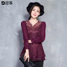 【特惠价】长袖蕾丝衫雪纺衫女中长款大码宽松打底衫小衫女上衣