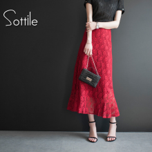 2017春夏新款蕾丝半身裙中长款高腰显瘦A字裙包臀裙女裙长裙裙子