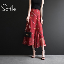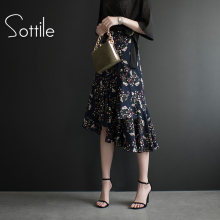2017夏新款女裙不规则雪纺印花半身裙中长款荷叶边鱼尾裙半身长裙