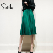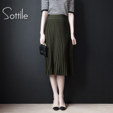 2017春秋新款复古高腰针织百褶裙中长款半身裙A字裙女裙中裙裙子