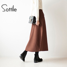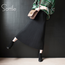 2016秋冬新款显瘦高腰中长款针织半身裙A字裙长裙厚冬裙女裙裙子