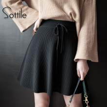2017春装新款针织半身裙系带A字裙中长款伞裙中裙2016秋冬蓬蓬裙