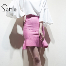 2017春装新款女弹力针织高腰鱼尾裙半身裙荷叶边不规则包臀裙短裙