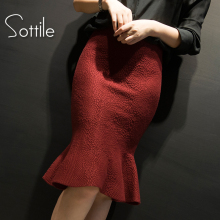 索蒂尔女2016秋冬新款荷叶边针织鱼尾包臀裙半身裙高腰短裙打底裙