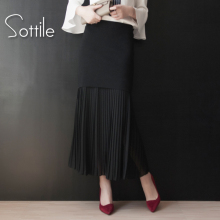 2017春雪纺拼接针织半身裙包臀裙百褶裙2016秋冬黑色高腰长裙女裙