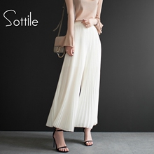 2017春夏新款雪纺百褶阔腿裤女长裤甩裤宽松高腰休闲裤大码九分裤