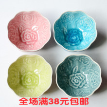 景德镇创意 玫瑰花陶瓷米饭碗 冰裂釉花瓣形状甜品碗 沙拉碗