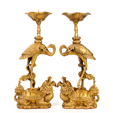 广缘德黄铜龟鹤烛台摆件仙鹤龟复古龟上仙鹤佛教供佛供奉蜡烛台