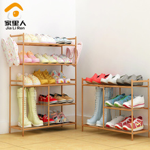 家里人简易鞋架多层创意鞋柜防尘竹子色小鞋架子全金属拆装