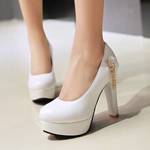 2017春季新款高跟鞋浅口圆头韩版百搭时尚粗跟白色单鞋大码女鞋子