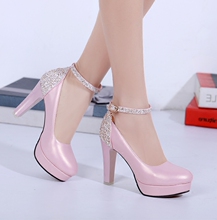 性感高跟女鞋2017春秋新款一字扣单鞋女粗跟防水台甜美圆头成人礼
